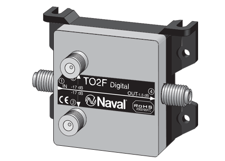 Naval digital tap-offs TO4 and TO2 have been designed especially for marine use and the complete TV/Radio frequencies of 0.1–1000 MHz worldwide. In order to avoid interference due to connection between the splitter and the ship’s hull, the splitter base is manufactured in plastic to make it double isolated.